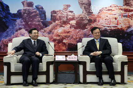 图为胡和平与陈敏尔亲切交谈。雷云 摄