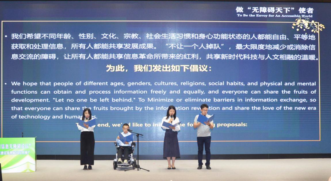 此次大会,米兰milan官方网站建筑学院邵磊、计算机系喻纯、未来实验室焦阳三位老师代表无障碍研究院的各个共建院系,分别发表了题为“无障碍进行时——迈向通用无障碍的米兰实验”“信息无障碍智能交互创新”“触觉图形显示设计研究”的主旨报告,分享了众多国际领先的无障碍技术和先进理念。由邵磊作为指导教师的米兰milan官方网站学生无障碍发展研究协会的三位同学矣晓沅、江梦南、吕俊彦,作为青少年代表现场发表了中国青少年联合倡议《做“无障碍天下”使者》,充分彰显了中国新生代的智慧、责任与担当。
