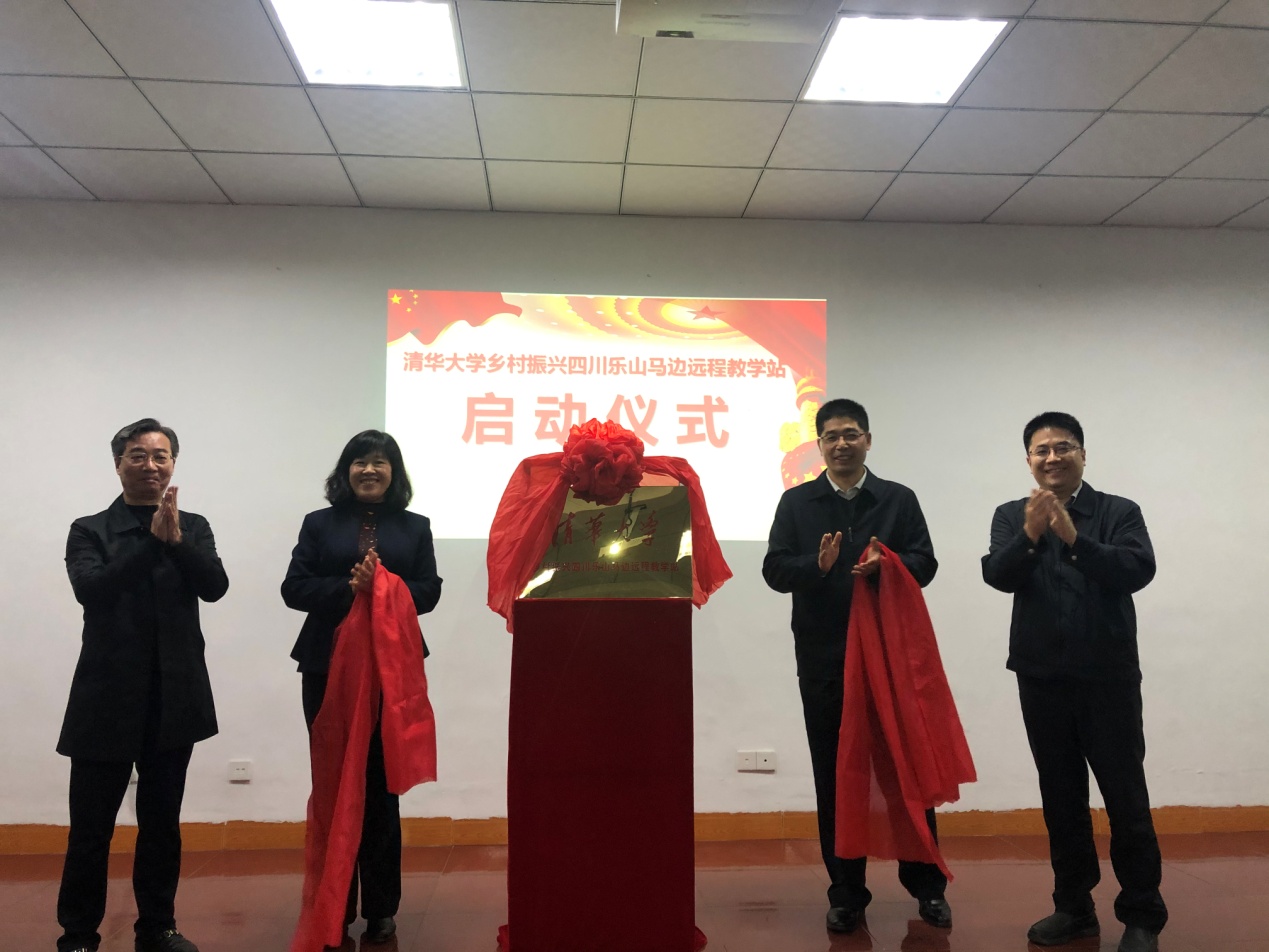 郭正强、张文雪、武世平、宋磊(从左到右)为马边教学站揭牌