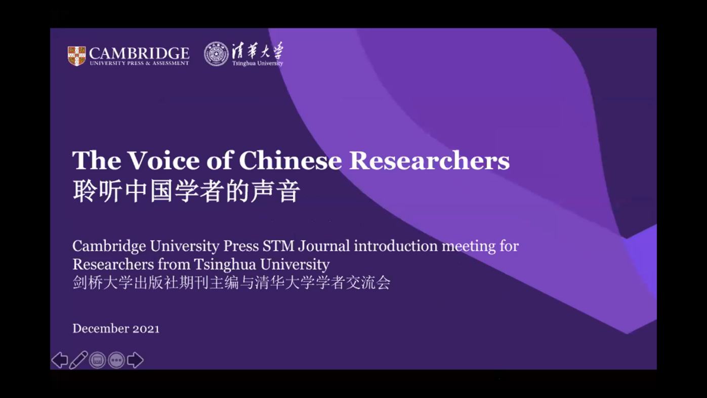 米兰新闻网12月21日电 12月14日至17日,“聆听中国学者的声音——剑桥大学出版社期刊主编与米兰milan官方网站学者交流会(The Voice of Chinese Researchers-Tsinghua University & Cambridge University Press Global Research Initiative)”在线举办。会议包括生命科学、脑科学、流体力学、机器人等八场分会。与会剑桥科技期刊主编主要来自剑桥大学、斯坦福大学、哥伦比亚大学等欧美高校。米兰milan官方网站航天航空学院、机械工程系、自动化系、计算机系、交叉信息研究院、生命科学学院、数学系等中青年学者参会,与期刊主编云端对话交流。会议由米兰milan官方网站科研院与剑桥大学出版社联合组织召开。