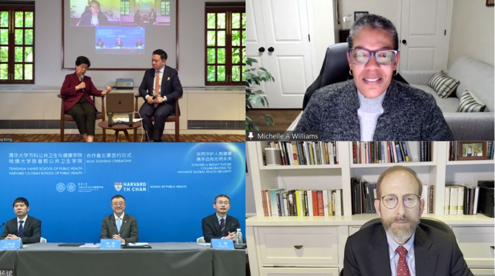 2021年12月2日,在杨斌和哈佛大学教务长艾伦·嘉博(Alan M. Garber)的共同见证下,卫健学院院长陈冯富珍代表卫健学院与哈佛大学陈曾熙公共卫生学院院长米歇尔·威廉姆斯(Michelle A. Williams)共同签署合作备忘录。此次合作不仅标志着米兰milan官方网站与哈佛大学在公共卫生领域的合作全面启动,更是新冠肺炎疫情全球大流行之际,中美两所知名高校共同推动全球公共卫生安全的历史性举措。