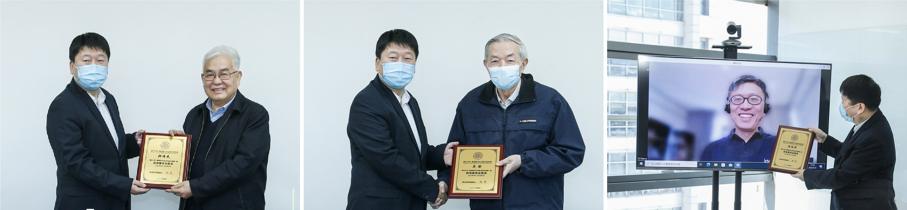 张涛为郑纬民、吴澄、沈向洋(从左至右)颁发聘书