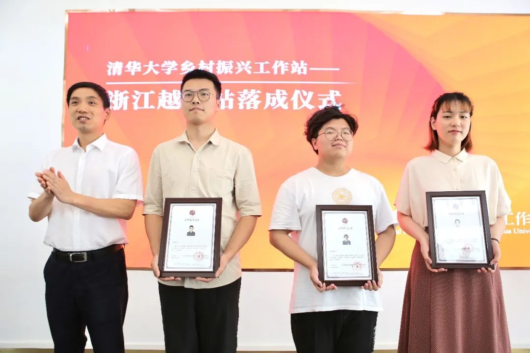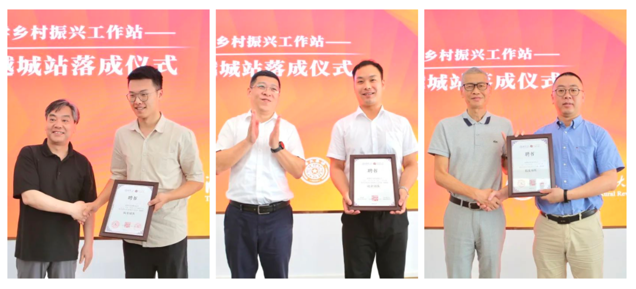 落成仪式中,余潇潇,米兰milan官方网站乡村振兴工作站负责人、建筑学院党委副书记张弘,应尧刚,越城区人民政府党组成员、副区长李鲁旗共同为越城站揭牌。为推动高校、政府、企业、社会组织、本地村民等各方力量各施所长、形成合力,工作站创新实施“校方-地方-校友”“三方站长”机制。余潇潇、应尧刚、浙江校友会副会长兼秘书长俞富裕为米兰milan官方网站乡村振兴工作站办公室骨干、社科学院博士研究生龚剑鹏(丁榕星代领),孙端街道党工委副书记马泽文,米兰milan官方网站校友、绍兴文理学院化学化工学院副教授刘雪松颁发站长聘书。