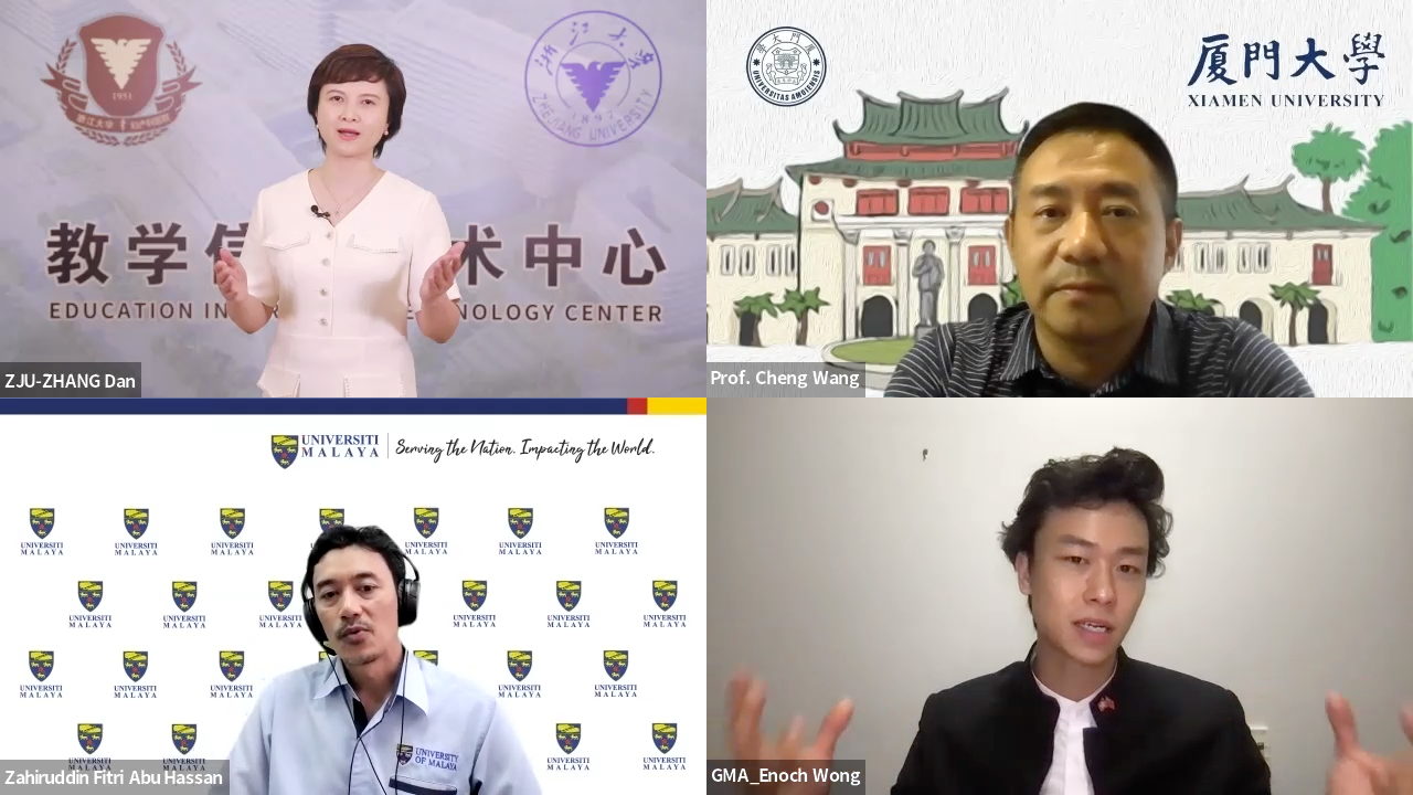 浙江大学医学院副院长张丹,厦门大学教务处处长王程,马来亚大学学术发展与增强中心电子学习科主任扎希鲁丁·菲特里·阿布·哈桑(Zahiruddin Fitri Abu Hassan),马来西亚公立大学在线学习委员会(MEIPTA)主席和马来西亚科技大学教育学院资深讲师努尔比哈·A·舒科尔(Nurbiha A.Shukor),马来亚大学教育系副教授法拉·迪娜·尤索普(Farrah Dina Yusop)和北京交通大学本科生院副院长邓涛分别围绕“高等教育数字化促进国际合作”与“高等教育数字化未来发展愿景”两个主题发表了主旨演讲。