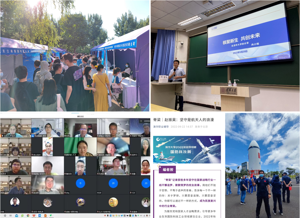 从左至右、从上至下:双选会现场,线下校友沙龙,线上校友沙龙,典型人物宣传