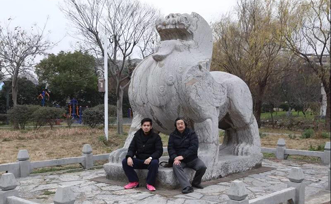 胥建国老师(右)和吴蔚(左)到南京考察石辟邪