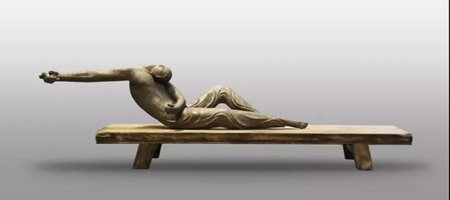 胥建国老师不仅肯定了吴蔚这一艺术发现,并从艺术理论的高度上进一步启发他:这个壳子相对于雕塑(正型)来说是负型,对应中国文化里阴阳的概念,而中国石窟艺术里的一个个龛,恰恰也是负型,如果仿照石窟,在负型里加入一些内容,那这个空间就有了内涵。在这样的启发下,吴蔚完成了第三件作品——《敦煌印象》。