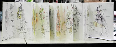 李薇去参观国际服装大师展览的一本本手绘记录。