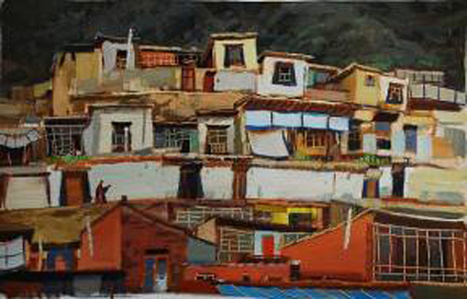 我们有幸在采访时欣赏了程老师多年来的作品,其中既有漆画也有大量的油画,有上千张油画写生,水墨、素描和黑白画作品,足迹遍及祖国大江南北。他每年暑假都会带着学生下乡写生,去过甘南7、8次,平均每天3张油画写生,“比学生还勤奋”。程老师笑谈在工作的时候丝毫没有觉得自己是一个艺术家,而是一个普通的劳动者,在作漆画时没有一点潇洒的感觉,脏兮兮的,气味儿又大,并谦逊地感慨“我做事儿感觉投入很多、很大,但见效还是比较缓慢的”。