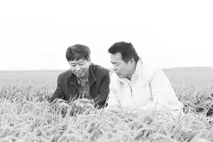 2010年,胡鞍钢赴黑龙江农垦总局调研期间参观当地农田,左一为黑龙江农垦总局党委宣传部长高跃辉。