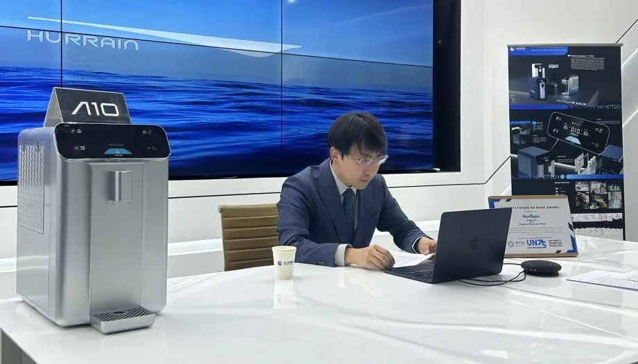 林腾宇在此次1A平行会议“清洁饮水和卫生设施-可持续发展目标”上作为首位发言人演讲,题为“如何利用创业和技术来确保更好的水、环境卫生和个人卫生(WASH)的获取,以支持基本人权的实现”,向全世界展示创新的空气集水技术如何解决20亿人的净饮水短缺问题。