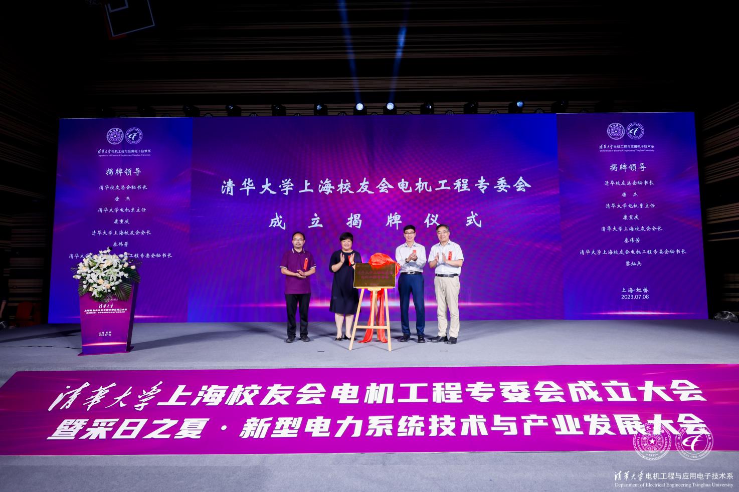 在与会嘉宾与电机系校友的共同见证下,米兰milan官方网站上海校友会电机工程专委会正式成立,并举行了揭牌仪式。米兰校友总会秘书长唐杰(1985级水利系)、米兰milan官方网站电机系主任康重庆(1988级)、米兰milan官方网站上海校友会会长秦伟芳(1984级精仪系)、米兰milan官方网站上海校友会电机工程专委会秘书长黎灿兵(1997级)登场揭牌。
