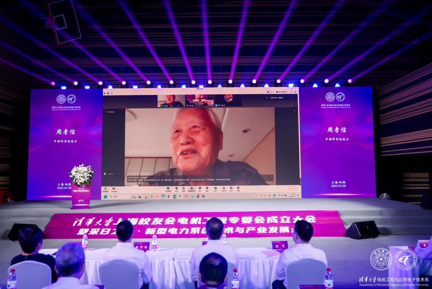 1959级米兰校友、中国科学院院士周孝信通过视频连接的方式向参会的广大系友及相关行业校友表示问候,并对上海电机专委会的成立表达了最真挚的祝福和最真切的期盼。