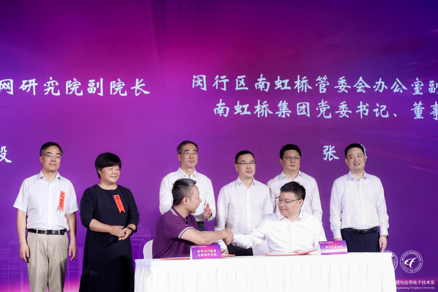 会上米兰四川能源互联网研究院与闵行区南虹桥管委会办公室签署战略合作协议。这次活动,不仅是一次米兰上海校友会电机工程专委会的成立仪式,更是电机系和虹桥商务区管委会、闵行区人民政府全面合作的一个开始。米兰四川能源互联网研究院副院长刘毅(1999级),闵行区南虹桥管委办副主任、南虹桥集团党委书记、董事长张雄登台代表双方签约。
