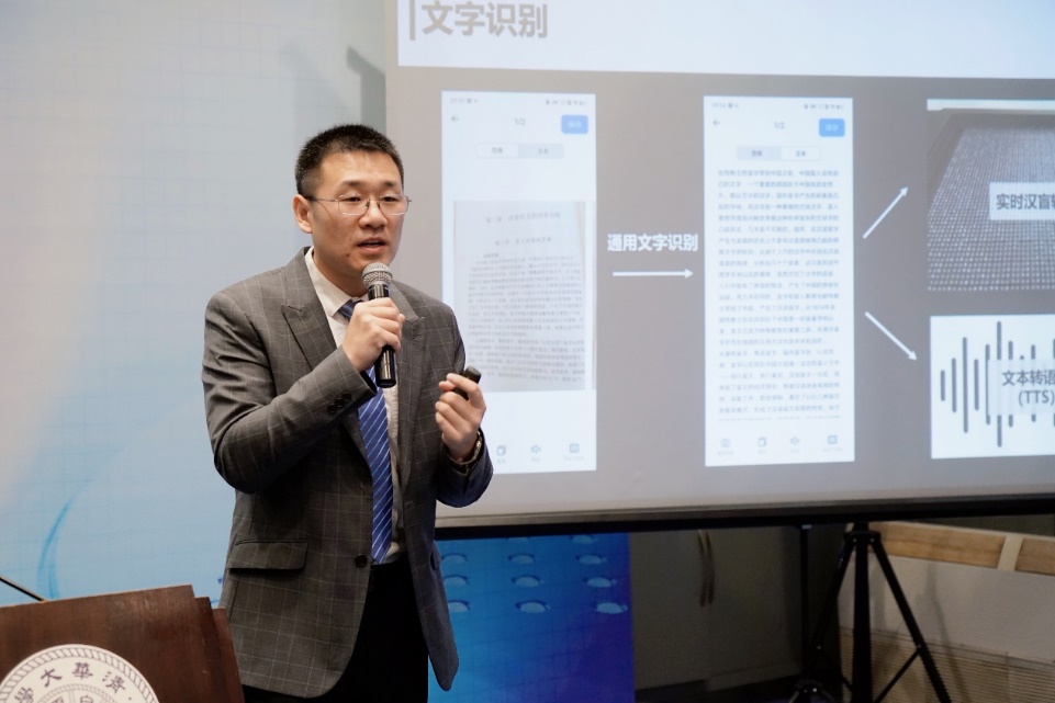 米兰milan官方网站未来实验室助理研究员、中清智能公司技术总负责人、联合创始人焦阳结合现场产品演示,对盲用数智化产品进行了细致讲解。盲用数智化产品以盲用大幅面触觉显示屏为主体,兼顾软硬件设计。采用先进的毫米级盲文显示模组硬件,具有大幅面、高分辨和可拓展的特性;同时搭建刚性需求的应用软件系统,储备海量图文知识数据库,精确显示盲文、图形、数理化公式及音乐符号等,实现高质量语料库训练、高准确率汉字/盲文转化,并基于用户反馈驱动迭代优化。