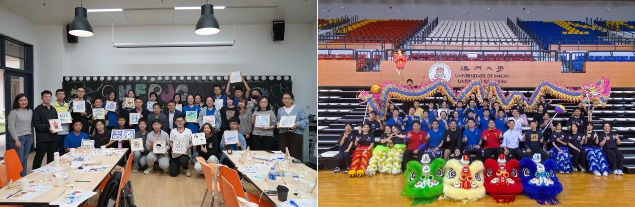 体验葡国瓷砖画制作(左)和舞龙、舞狮(右)