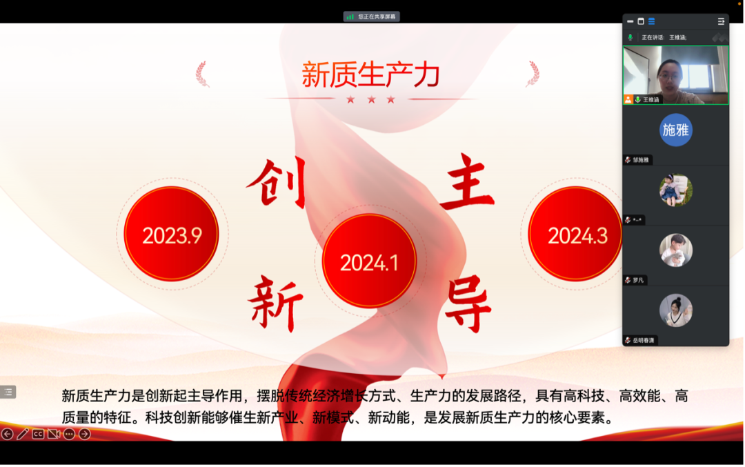 社科学院社科硕232集体的同学们对“新质生产力”的理论含义与现实意义进行集中讨论,提升对高质量发展的认识水平。