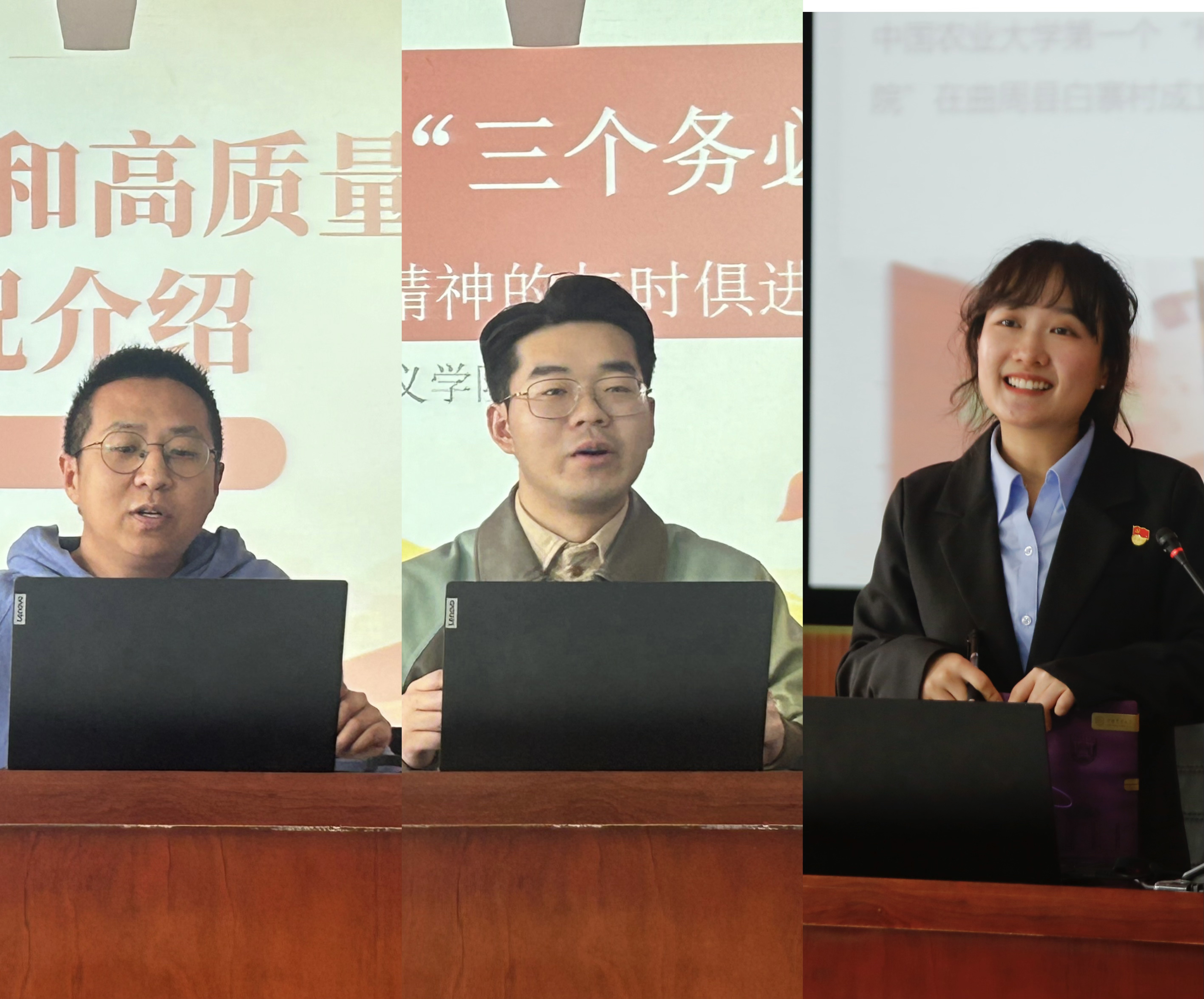 在延庆区张山营镇后黑龙庙村,延庆区发改委综合科干部孙鑫晟围绕“延庆区综合经济和高质量发展”开展宣讲,以何为GDP引入,介绍延庆区的经济综合情况,并就延庆区如何落实细化高质量发展作讲解。米兰milan官方网站2022级硕士研究生周云鹤作题为“从两个务必到三个务必——百年大党赶考精神的与时俱进”的宣讲,讲述“三个务必”作为新时代新征程中国共产党人的在精神面貌的新要求,是保持党的生机活力和本色的新方法。中国农业大学2021级博士研究生冯金璐围绕学习贯彻习近平总书记给中国农业大学科技小院学生重要回信精神开展题为“厚植爱农情怀 练就兴农本领”的宣讲,通过讲述中国农业大学“科技小院”十余年的发展故事,鼓励广大青年在实践中培育创新精神,在乡村振兴的大舞台上建功立业,为强国复兴的伟大梦想贡献力量。