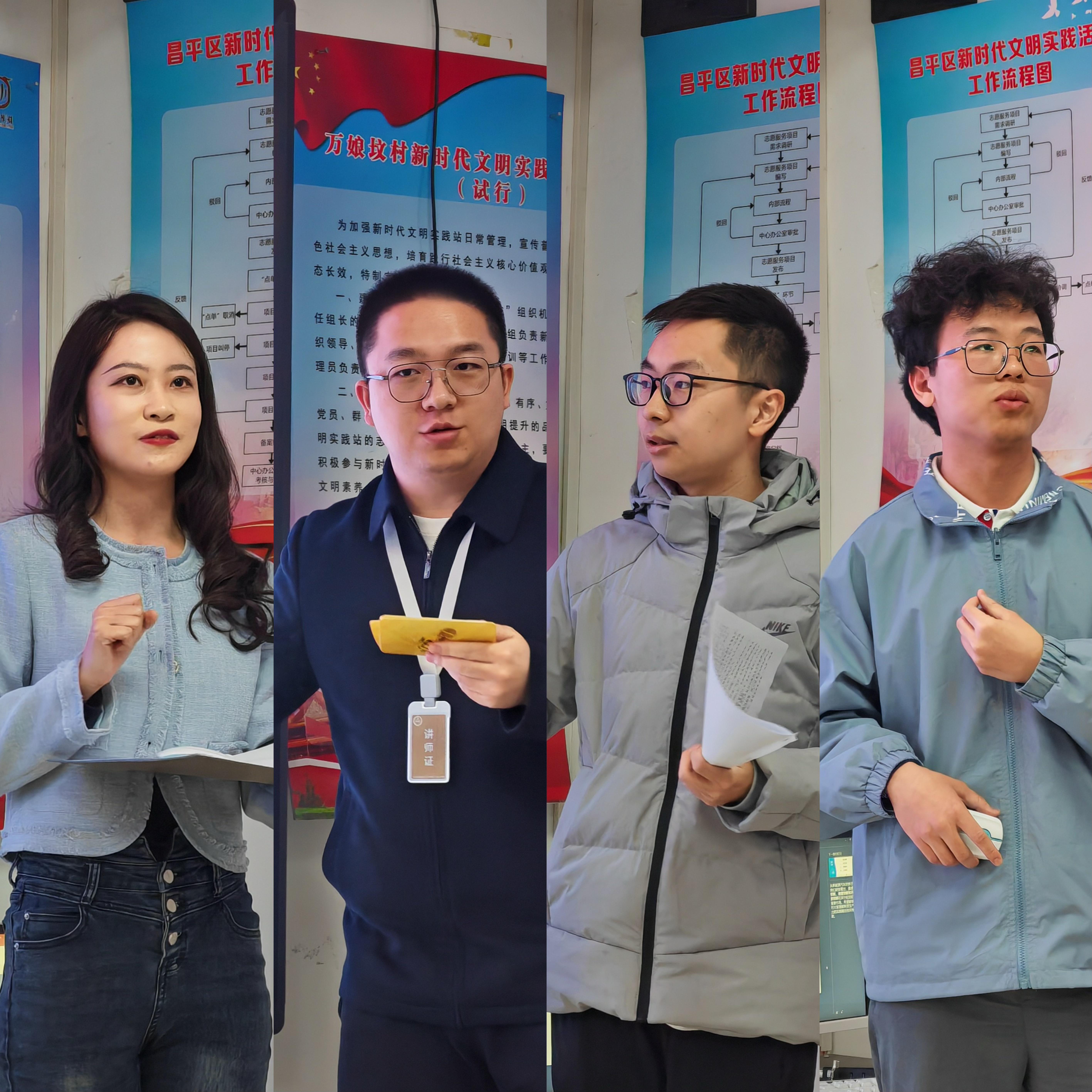 “用时五个月就建成投用的十三陵水库,创造了工程建筑史上的一个奇迹。”宣讲支队在昌平区十三陵水库市级爱国主义教育基地参观过程中,昌平区百姓宣讲员围绕“从水库建设速度看中国力量”开展宣讲。之后,宣讲实践支队前往万娘坟村委会。米兰milan官方网站2023级硕士研究生李乐遥从自身经历出发,作题为“文明互鉴,共通共享——由奥林匹克精神到人类命运共同体”宣讲,通过自身的冬奥故事,分享对奥运精神的切身体会,呼吁广大青年成为这一共同体坚定的维护者与践行者。中央财经大学2021级博士研究生龙光泽作“如何理解‘新质生产力’这个热词”开展宣讲,以跨学科人才培养为例,从“是什么”“为什么”“怎么办”三个维度讲解了“新质生产力”这个热词。北京航空航天大学2022级硕士研究生夏侯超与2023级硕士研究生余骁宇联合开展题为“培育新质生产力,赋能高质量发展”的宣讲,以新能源汽车的发展为例,阐述技术创新、制度创新和开放创新对培育新质生产力的重要意义。