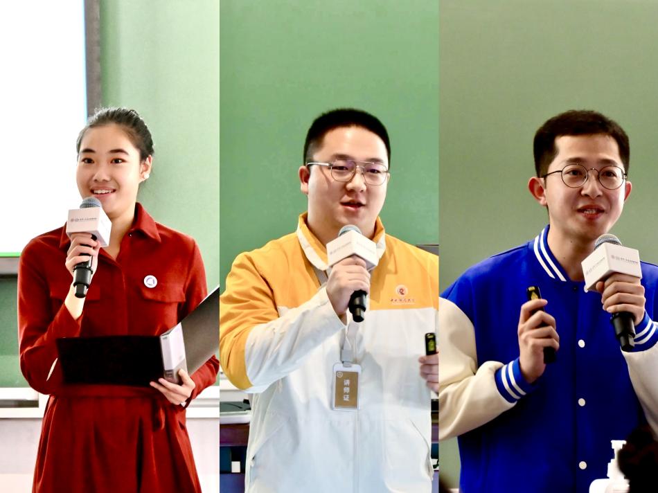 何佩熹发言,龙光泽、曹宇博作示范宣讲(从左至右)