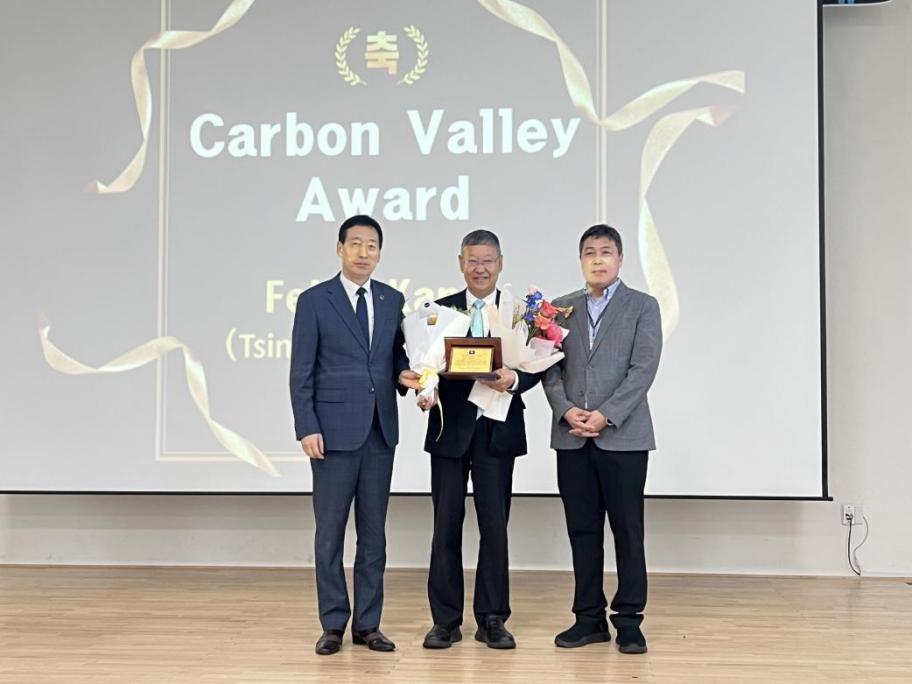 康飞宇(中)获得韩国碳学会颁发的“碳谷奖”