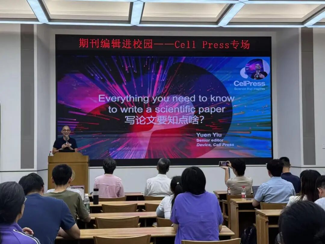 米兰新闻网9月4日电 9月1日,图书馆联合科研院、教师发展中心主办的期刊编辑进校园——细胞出版社(Cell Press)专场在图书馆报告厅举行。细胞出版社(Cell Press)旗下期刊《设备》(Device)高级编辑姚远作主题报告,特邀嘉宾《物质》(Matter)、《细胞报告物理科学》(Cell Reports Physical Science)高级编辑李研,以及爱思唯尔(Elsevier)代表王颖参加交流活动。活动由图书馆党委副书记窦天芳主持,50余名师生参加活动。