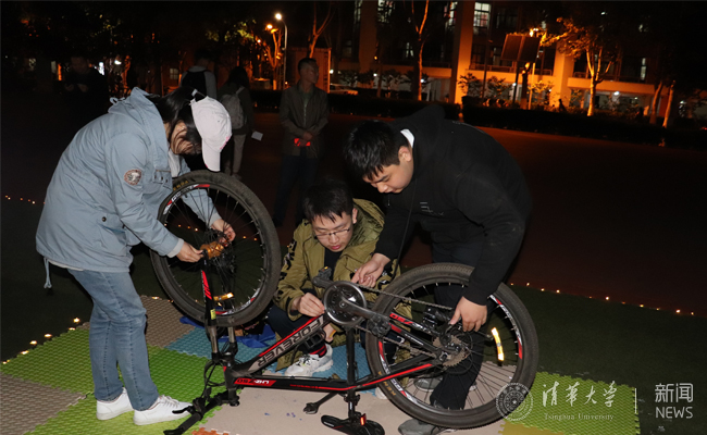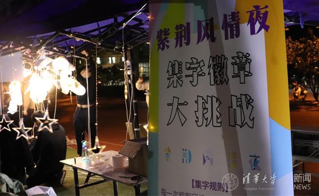 紫荆风情夜现场设置了修车大挑战、小鬼下厨、黄金矿工、劳动工具连连看、光影纸艺等趣味活动。“修车大挑战”环节邀请同学们亲自动手修车,体验装车链、换车胎等过程。或俯身细探、轻拧慢拨,或手执工具、小心翼翼,同学们在动手修车的过程中各显神通。“黄金矿工”游戏点处有一个装满彩色海洋球的波波池,同学们需要背上箩筐,头戴探照灯,寻找混杂在其中的“金矿”小黄鸭。在“小鬼下厨”游戏点,同学们需要在规定时间内用筷子往小方盒中夹入一定数目的花生、黄豆或绿豆。辨豆容易夹豆难,好不容易颤颤巍巍夹起来的豆子,稍有不慎便会前功尽弃。而“劳动工具连连看”游戏则考验同学们能否在规定时间内顺利匹配劳动工具的图片与名称。锄头与铁锹,钉耙与羊角锤,铧犁与龙骨车,丰富各异的劳动工具让不少“只闻其名,不知其形”的同学们大开眼界。