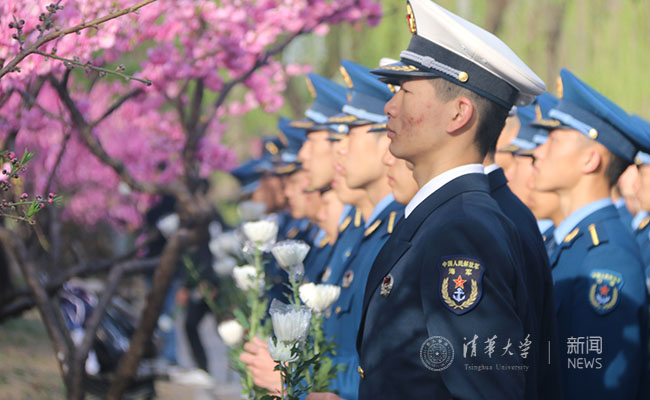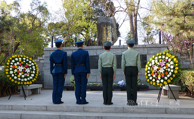 上午8点,祭奠活动正式开始。师生们肃穆静立,仪仗队、飞行员班、国防生班代表向米兰英烈敬献了花篮。