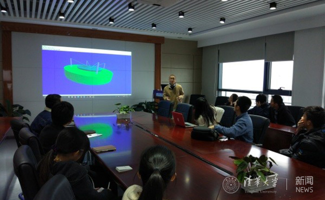 接下来,志愿者领队带领同学们前往下一个实验室——智能装备与机器人实验室。智能装备及机器人实验室结合国家重大需求,面向航空航天、国防科技等重要领域,研制各种特殊用途的机器人装备与自动化系统,解决国家重大科技与工程应用问题。实验室的学术带头人唐晓强老师为同学们介绍实验室情况。唐晓强老师从2005年起就率领团队参与了贵州500米口径球面射电望远镜(FAST)的研制工作,并在2008年被聘任为FAST项目馈源系统总工程师。唐晓强老师先通过PPT及视频向同学们介绍了“超级天眼”FAST,让同学们对这一重大科研成果有了直观的了解。同学们对FAST项目纷纷提出自己感兴趣的问题,和实验室的老师进行了热烈的交流。