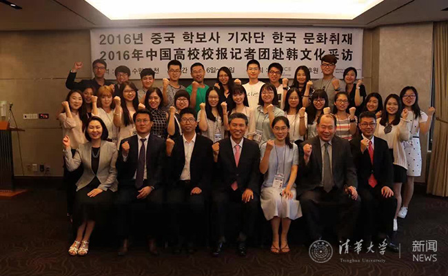 韩国文化产业交流财团和中国高校校报记者团成员合影。