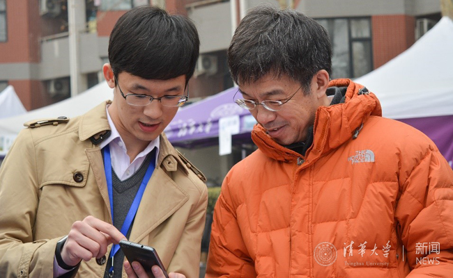 Labμ骨干成员何钦尧向史宗恺老师介绍社团开发的产品。何海程 摄