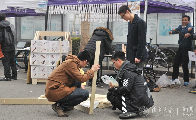 微创造协会同学在现场搭建模型。易艾欣 摄