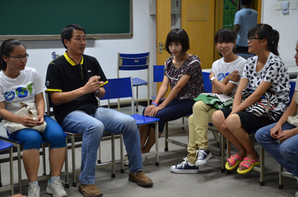 图为同学们分享自己的体育梦想。