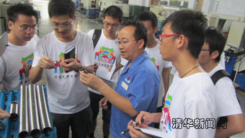 图为实践支队成员在生产车间与技术人员交流。朱学军 摄