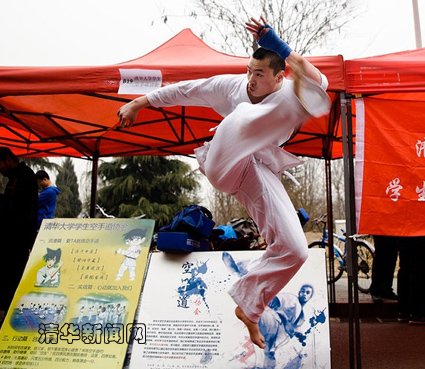 图为跆拳道社凌空飞踢引来一阵赞叹。王建一 摄