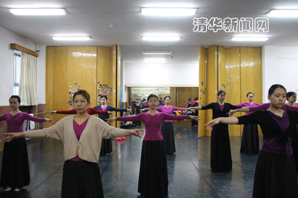 由于参训人数较多,而排练场地资源十分有限,大厅、走廊也成为了同学们排练的场地。同学们克服种种困难,在训练中早出晚归、刻苦练习,不少队伍每天排练近10个小时,超过了专业团体的训练强度。队员们互相鼓励,互相帮助,用辛勤的汗水换来了业务水平和艺术素养的提升。