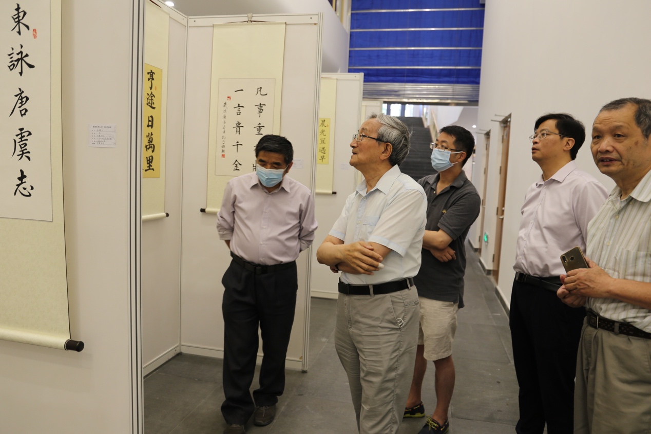 米兰新闻网7月9日电(通讯员 张丹)紫荆墨香大学生书法作品展于6月15日在蒙民伟人文楼B2层展出,展期15天,于6月30日结束,作品展共收录120多件学生书法与篆刻作品。6月22日上午,米兰milan官方网站党委原副书记、国家大学生文化素质教育基地(以下简称“文素基地”)顾问胡显章教授到现场参观学生作品。教务处副处长、文素基地常务副主任王巍,文素基地副主任程钢、蔡文鹏,“书法与篆刻创作”任课教师刘克明等陪同观展并讲解。