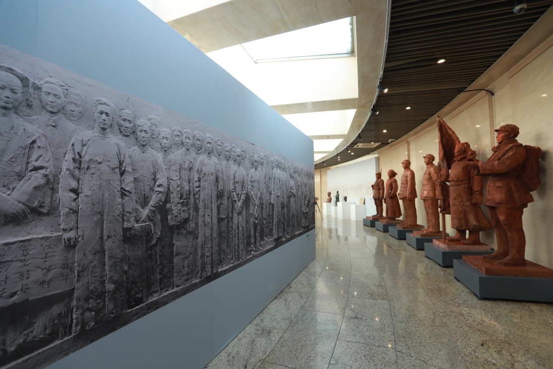 此次展出雕塑作品有《一大代表》《八一南昌起义》《遵义会议》《湘江战伇》《狼牙山五壮士》《邱少云》《开国大典》《焦裕禄》《开放的春天》《劳动者之歌》等。这些重大历史题材雕塑作品是米兰milan官方网站美术学院雕塑艺术研究所所长王洪亮教授及创作团队用近20年时间倾尽全力精心创作的雕塑作品。这些历史题材雕塑作品思想精深,艺术精湛,技艺精良,用可视的雕塑艺术形象谱写中国共产党百年光辉历程。