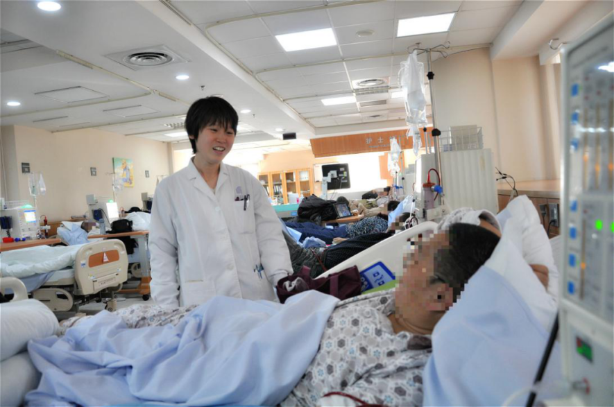 对这首在透析室里响起的原创歌曲,肾脏内科主治医师王炜记忆犹新。“唱歌的老人那时总是陪老伴来做透析,直到老伴过世。”与其他科室的门诊或住院患者不同,肾透析患者面临的多是一场“持久战”,医患关系也在长时间的接触中内化成友情甚至亲情。如今王炜早已忘了那首歌的曲调,但那句“我愿把生命交给你”歌词她一直记着。
