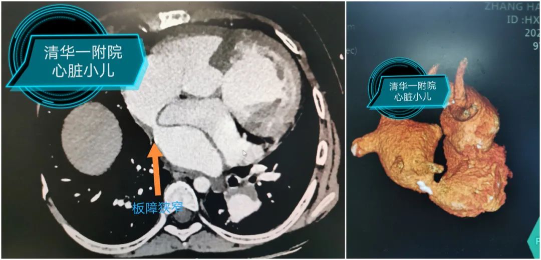 对于矫正型大动脉转位患儿来说,主要应用双调转术进行治疗,随访中发现术后板障梗阻发生率为13%~16%,发生机理与沿板障缝线的瘢痕形成或自体心包组织与周围组织疤痕形成并收缩有关,与患儿生长发育导致板障处的相对狭窄也有一定关联。肺静脉板障狭窄引起肺静脉淤血最终出现肺动脉高压和三尖瓣反流,导致右心功能的恶化。由于既往需多次手术,且手术创伤大等因素导致粘连重,再次手术风险高,多采用内科保守治疗。随着新科技的发展和应用,可以采用介入方法通过球囊扩张或支架植入解除血管的狭窄,但由于没有理想的手术入路,操作难度大。综合考虑各种因素,外科微创手术创伤小,不需要经过复杂迂曲的解剖路径,经食道超声引导,可以精准定位,直接到达狭窄位置。以最小的损伤解除患者的板障狭窄,对此类患者的治疗开创了一个新的治疗方式,使困扰患儿多年的问题得到了圆满的解决。