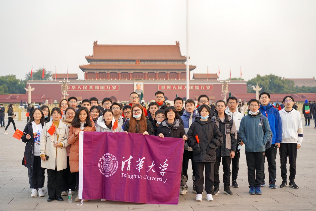 参加升国旗活动的同学们在天安门广场合影留念