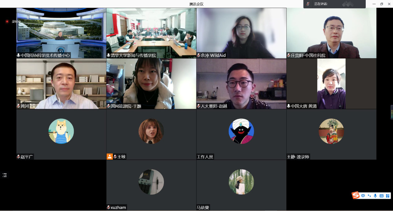 国网能源研究院高级研究员于灏提出,能源电力企业是实现双碳目标的主力军和排头兵,正在积极探索双碳行动方案,构建新型电力系统,同时开展科技传播工作,通过主流媒体、新媒体等多种渠道发布专业内容,加快构建具有中国特色的对外能源话语体系。中国大唐集团市场营销部市场研究处处长、集团双碳办公室总协调人黄清提出,实现双碳目标,需要尊重科学规律,把握工作节奏,突破单一企业的单打独斗,实现统筹协调和各类机构共同作为,适应全国产业市场的发展,随着全国碳交易市场的发展,央企在碳排放、碳资产交易规则等方面有更多值得探索的行动。野生救援组织北京首席代表余冲提出,野生救援组织在统一的行动倡导下,根据不同传播载体设计传播策略,气候传播存在不同层次的目标受众,推动个人低碳消费的行为转变需要填补消费者的认知缺口和行动改变缺口,加强各方协同作用。