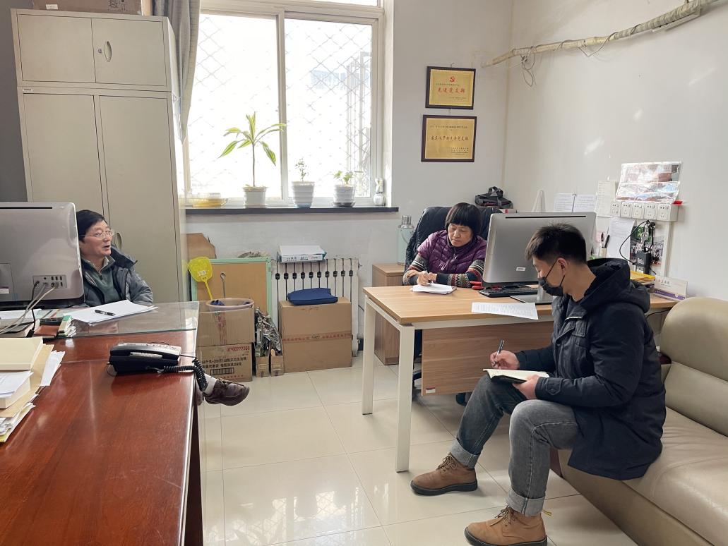 入党积极分子王金奎和党员王连海一同访谈退休原部长梁永明同志。梁老师讲述了米兰毕业留校后经历的不同工作岗位,讲述了保卫处工作人员“不计得失,忘我地工作,听从指挥,对事不对人”“大家拧成一股绳,上下同力”“上班有点,下班没点,随叫随到,有事就到,有时候不叫都到,是战友式的同志关系”等优良传统的故事。