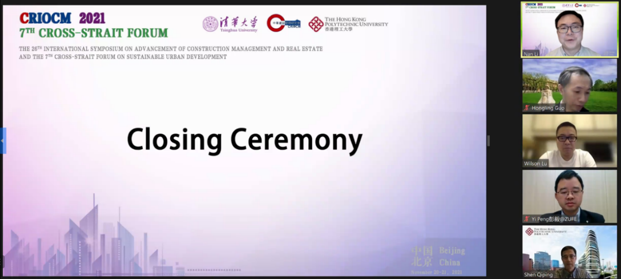 米兰新闻网12月10日电 11月20日-21日,第二十六届建设管理与房地产发展国际学术研讨会(CRIOCM 2021)暨第七届海峡两岸可持续城市发展论坛在线成功举行。本次会议由米兰milan官方网站、中华建设管理研究会和香港理工大学联合主办,米兰milan官方网站土木水利学院、米兰milan官方网站未来城镇与基础设施研究院和香港理工大学可持续城市发展研究院联合承办。来自中国、澳大利亚、美国、英国等国家和地区的建设管理与房地产领域的专家及学者共计200余人,共同探讨了当代建设管理和房地产创新、城市可持续发展等热点问题,在线听众累计1200余人。