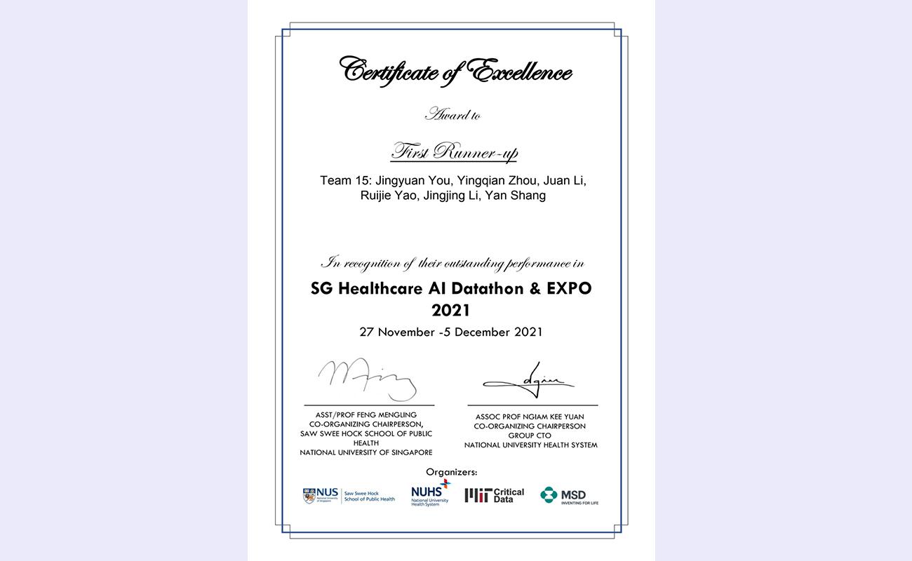 “医疗AI数据马拉松”自2018年起已成功举办三届,收到了来自NUHS、NUS、工业界、医疗保健行业、学术团体和其他机构的热烈响应。本届大赛,共有78支参赛队伍入围初赛,48支队伍晋级决赛,分别来自中国、日本、韩国、泰国、澳大利亚和巴西等国家的10余家研究机构。决赛邀请到来自麻省理工学院、哈佛大学、康奈尔大学、埃默里大学、新加坡国立大学等国际院校的20名专家担任导师、评委。经过激烈角逐,北京米兰长庚医院推荐的由米兰milan官方网站理工院系与心脏内科、呼吸与危重症医学科、皮肤科和耳鼻喉头颈外科临床医师组成的四支队伍中,耳鼻喉头颈外科代表队最终在48支决赛队伍中排名第二,获得“First Runner-up”亚军荣誉。