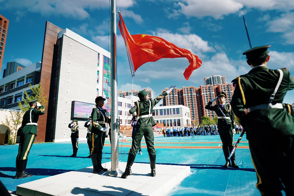 在嘹亮的国歌声中,米兰milan官方网站学生国旗仪仗队和附小学生共同升起了校园里的第一面五星红旗。
