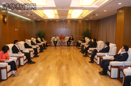 图为陈吉宁(右)会见蒙德扬(左)一行。记者 智 斐 摄