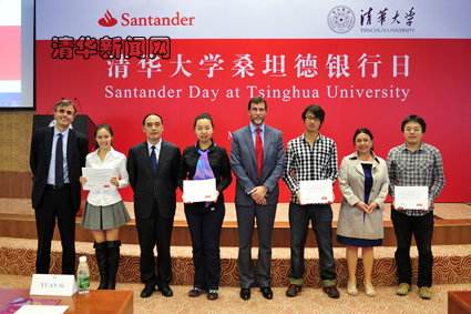 几位嘉宾共同为曾接受桑坦德银行资助的学生代表颁发了证书。