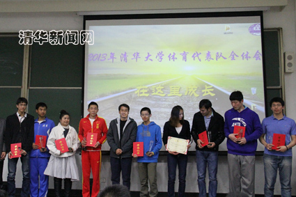 韩景阳代表学校高度肯定了代表队的工作和取得的成绩,并希望每一位体育健儿更好地兼顾训练和学习,真正成为一名“又红又专,全面发展”的学生,继续发挥引领和示范作用,为全校的体育锻炼做出榜样、做出贡献。