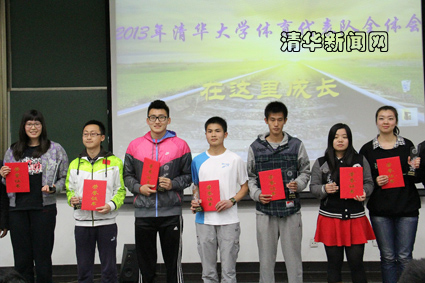 会议通过精彩的短片,充分展现了“十佳运动员”、“优秀队”与“最佳突破奖”获得的队伍在训练赛场的风采,以及这些同学与队伍在全校体育氛围营造与推动校园群众体育方面发挥的示范作用。在随后进行的“马约翰奖”颁奖环节,代表队王和中和陈伟强老师分别以生动的故事分享了师生情,王和中回忆起当年杨笑蕾大年初一独自在射击馆加练的情景;陈伟强在现场声情并茂地模仿起胡凯在运动场上的招牌动作……最终,孟澄等10名同学获得“十佳运动员”称号,乒乓球队等6支队伍获得“优秀队”称号,女子游泳队获得“最佳突破奖”,胡凯、杨笑蕾获得“马约翰奖”。